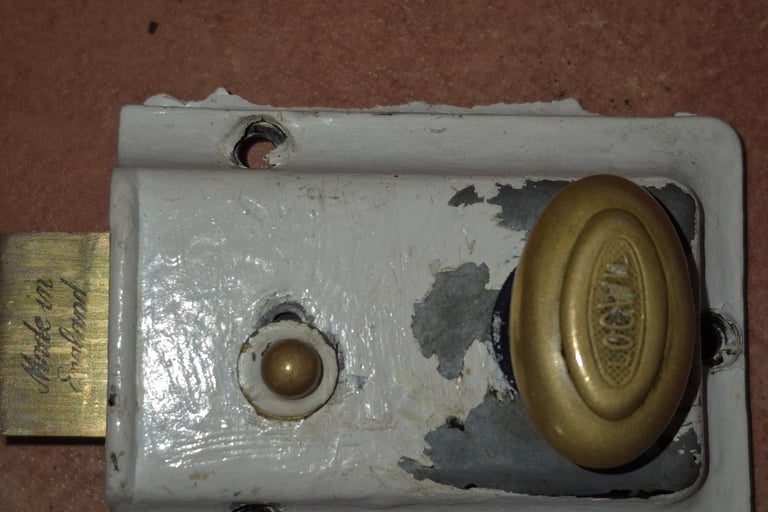 This locwil nightlatch, proudly made in England, has stood the test of time and continues working flawlessly even after many coats of paint. The traditional nightlatch is often found on many wooden doors throughout homes and businesses alike. However, Derek, our knowledgeable Locksmith in Stockton Heath, always emphasizes the importance of utilizing a mortice deadlock in combination with these types of locks. This is because the traditional nightlatch cannot be deadlocked from the outside, which could pose a potential risk to your home security.